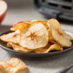 Lightly sprinkle with cinnamon and a tiny pinch of salt. If you like a sweeter chip, dust with a bit of sugar. A quick mist of oil is optional for even browning.