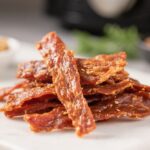 Condition (optional but helpful). For even moisture, place cooled jerky loosely in a clean jar for 24 hours, shaking a couple of times. If condensation appears, return to the air fryer for 15–20 minutes.