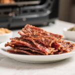 Dry the jerky: Cook for 2–3 hours at 175–180°F, flipping every 45–60 minutes and rotating racks if your unit has multiple levels. If your lowest temp is 200°F, start checking at 1.5 hours and reduce time as needed.