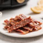 Air fry and rotate: Dry at 180–200°F for 2 to 3.5 hours, flipping and rotating racks every 30–45 minutes. Time varies by thickness and air fryer model.